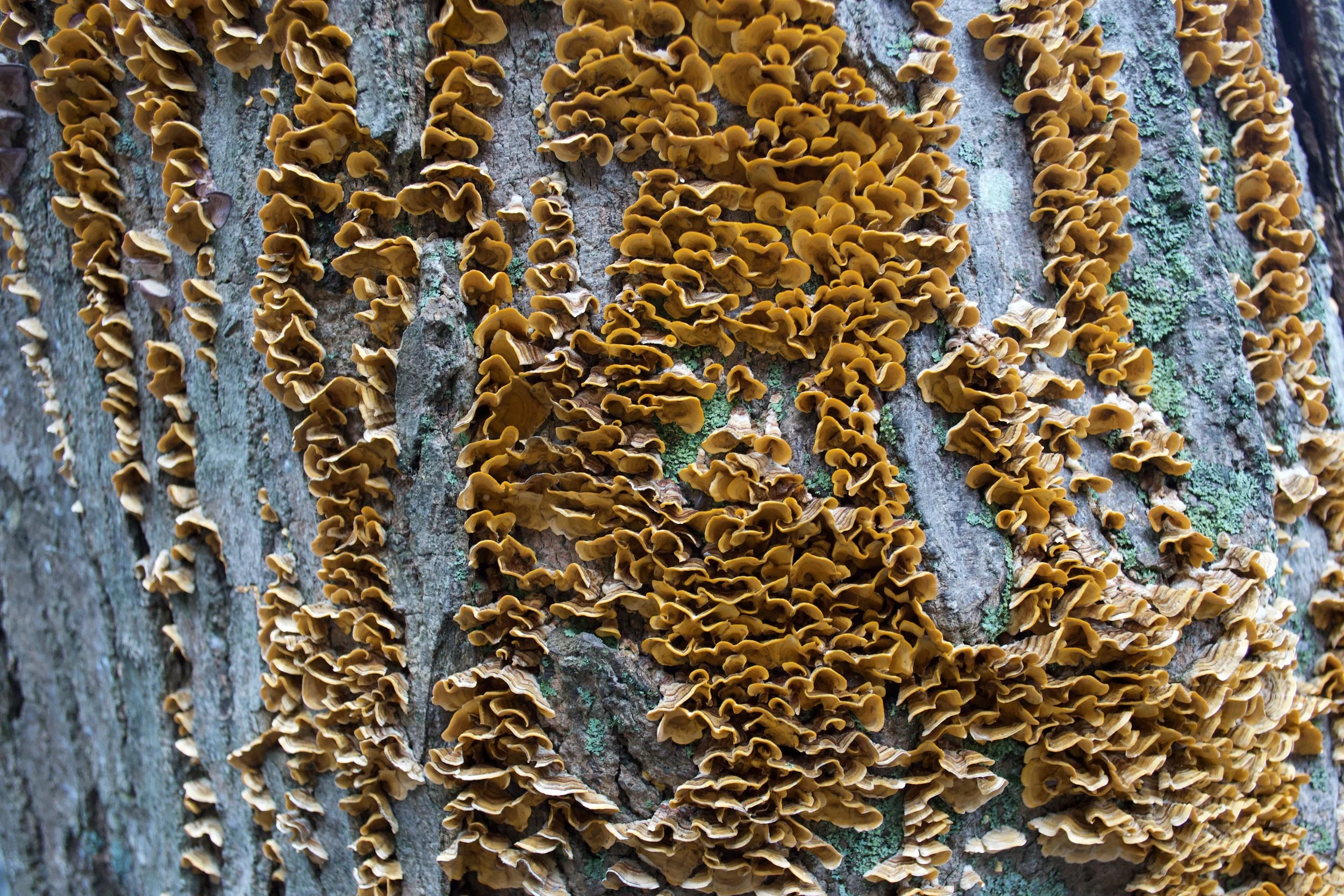 Mushrooms, man. Little mysteries living in the details of the world, look broadly and you'll see nothing, look closely and they're everywhere (on the East Coast at least). Even when you know what kind grows where for what reason, there's still a veil of mystery, how did this little spore land here, how long ago did it rain, who's been nibbling away your flesh?